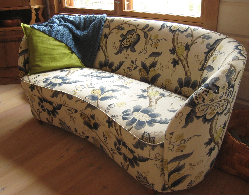 This old sofa was refurbished a few years ago. The framework underneath had collapsed, but having been “handmade” probably in the 40´s it would have been a pity to discard this sturdy little sofa. Now it´s the focal point of our living room 🙂