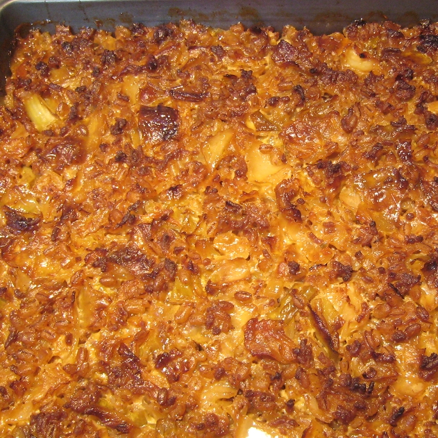 This is a traditional finnish recipe for cabbage casserole. Instead of the nowadays more usual rice I use locally produced pearl barley. It´s a fantastic substitute for rice, bulgur, cuscus etc.