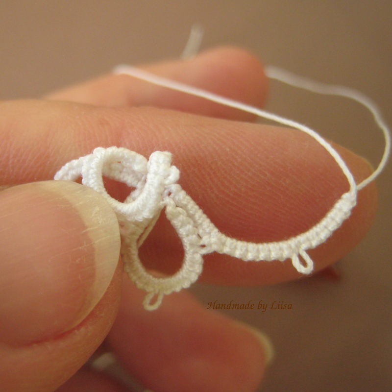 Tatted and crocheted earrings, korvikset käpypitsistä ja virkkaamalla