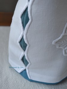 Whitework tea cosy, valkokirjontapannumyssy vanhan mallin mukaan