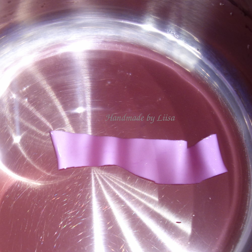 First I had to melt the packets of dye – separately so that I could mix the liquids to my liking. I dissolved the pink packet first and put the liquid dye into a jar. While rincing the pot I decided to try out if the nearly clear liquid would colour my fabric. To my surprise the lycra sucked the colour immediately and with that tiny bit of dye I got a very vibrant hue! Next I dissolved the yellow packet and poured half of the liquid into another jar to wait. With another piece of lycra I tried out the colour, but the yellow didn’t dye the material at all as deeply as the pink dye. I kept dipping the piece back into the solution, which was considerably richer than the almost clear liquid that had dyed the pink swatch, but the colour remained quite pale. Both experiment pieces in the picture above.