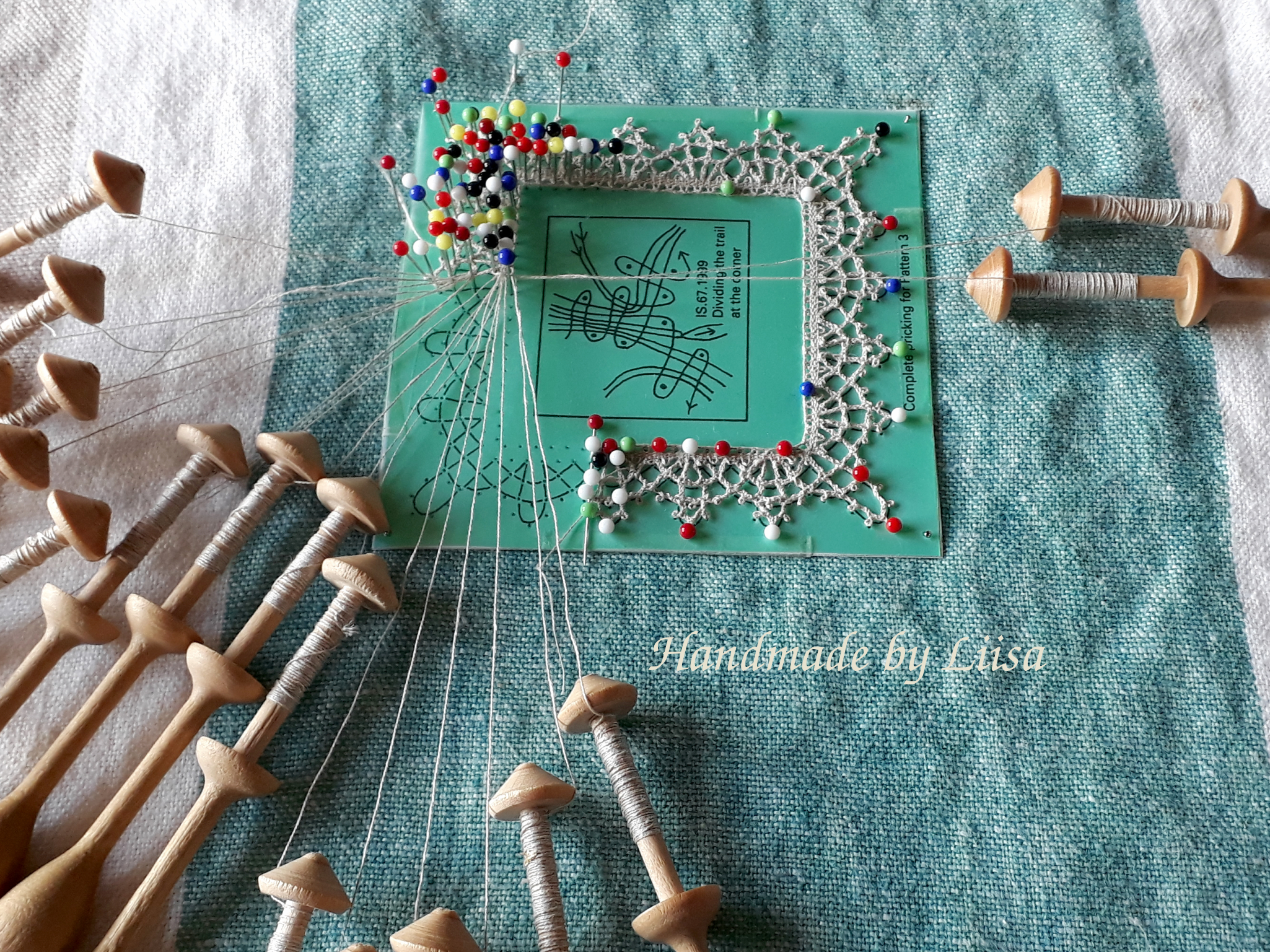 Lace for pin cushions, pitsiä neulatyynyn reunaan