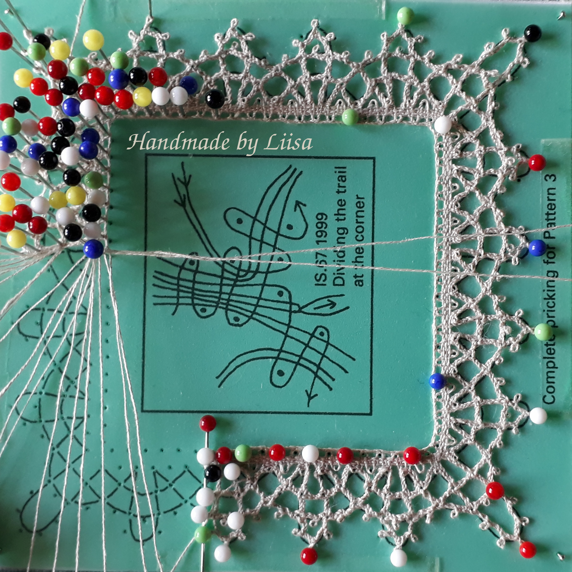 Lace for pin cushions, pitsiä neulatyynyn reunaan