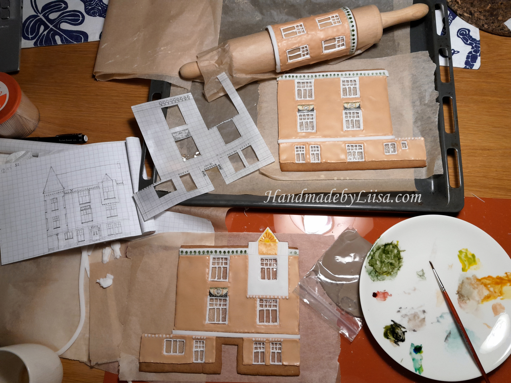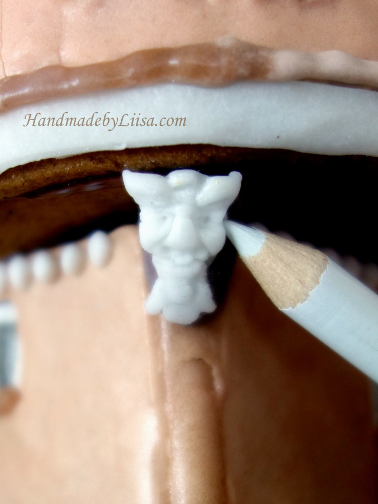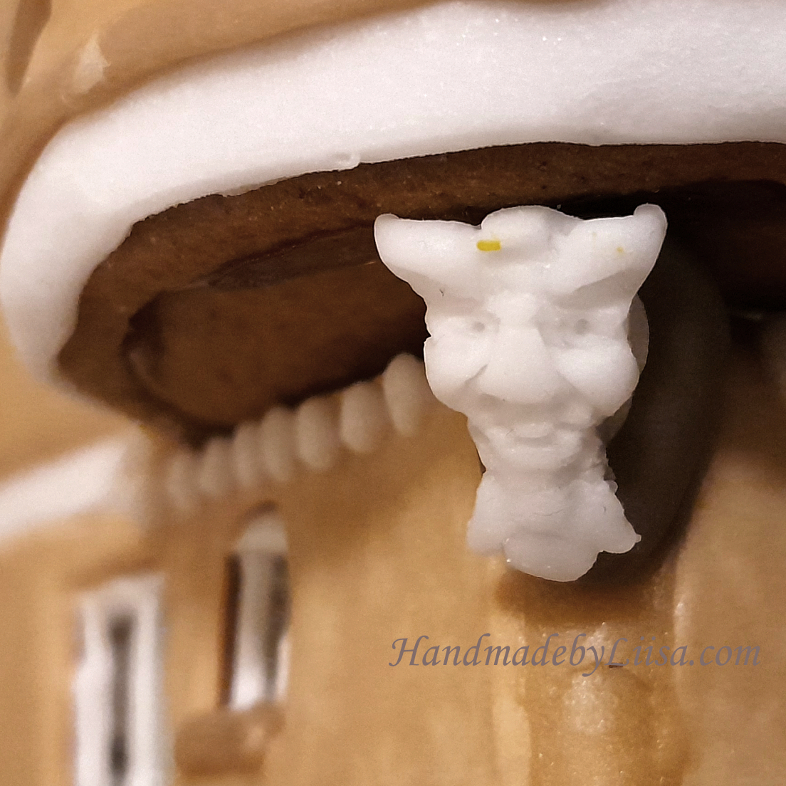 The plasterer of the gingerbread tower didn’t do a very good job though! Balancing to get the right consistency for the icing on the curved surface was tricky. Another bad mistake was to use fructose for the windows since I didn’t have isomaltose at hand. The windows didn’t want to dry at all. They kept sticking to the parchment paper causing blurry panes with holes 😟 The windows of the tower dried properly though and look quite pretty.
