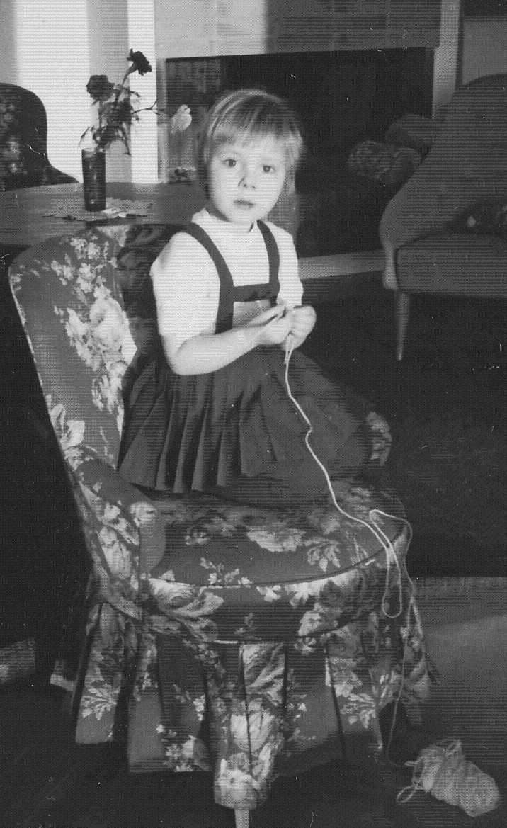 Here´s me, age four, crocheting! I have no recollection of this, so I was absolutely delighted to recieve some wonderful old pictures from our nanny, among them this proof of my early interest in needlework 😊