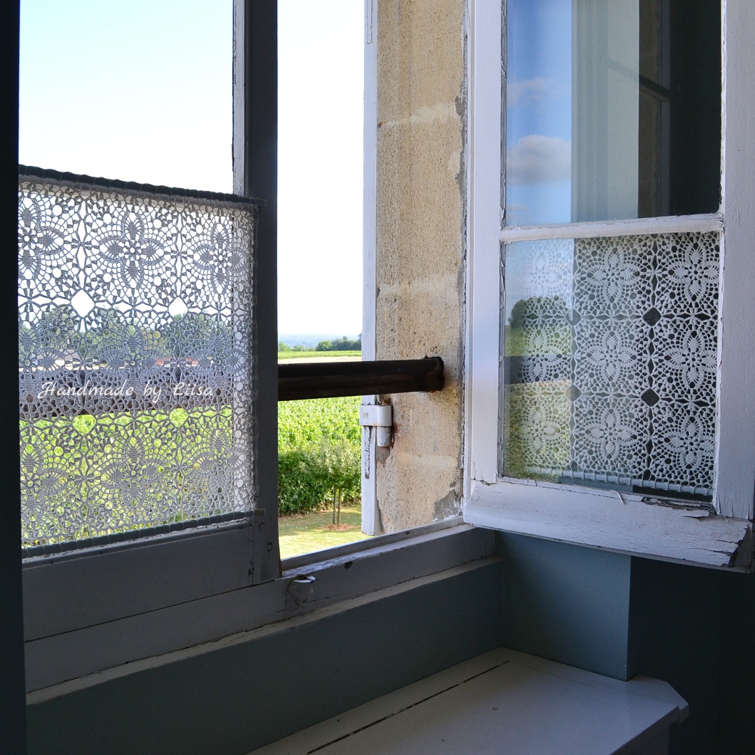 I took these photos a couple of years ago of screens I made for the house in France that we probably won't be visiting this summer. Lace curtains are a lot more common in Mediterranean countries than back home so I had the idea to crochet some screens where they were needed in the house.… Continue reading Crocheted screens, virkattuja valoverhoja