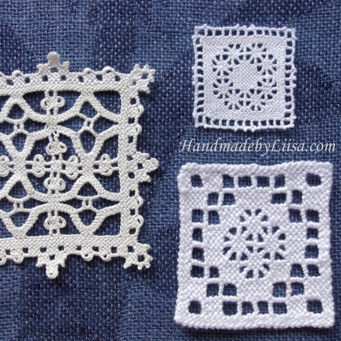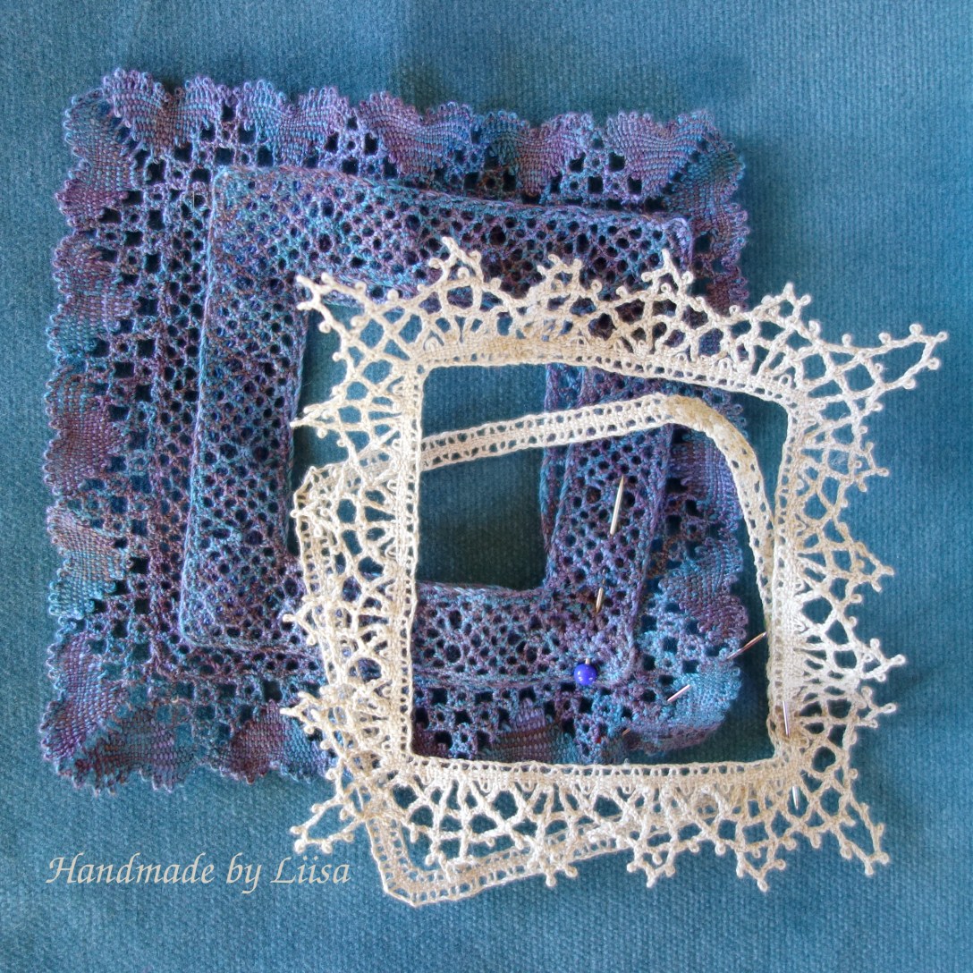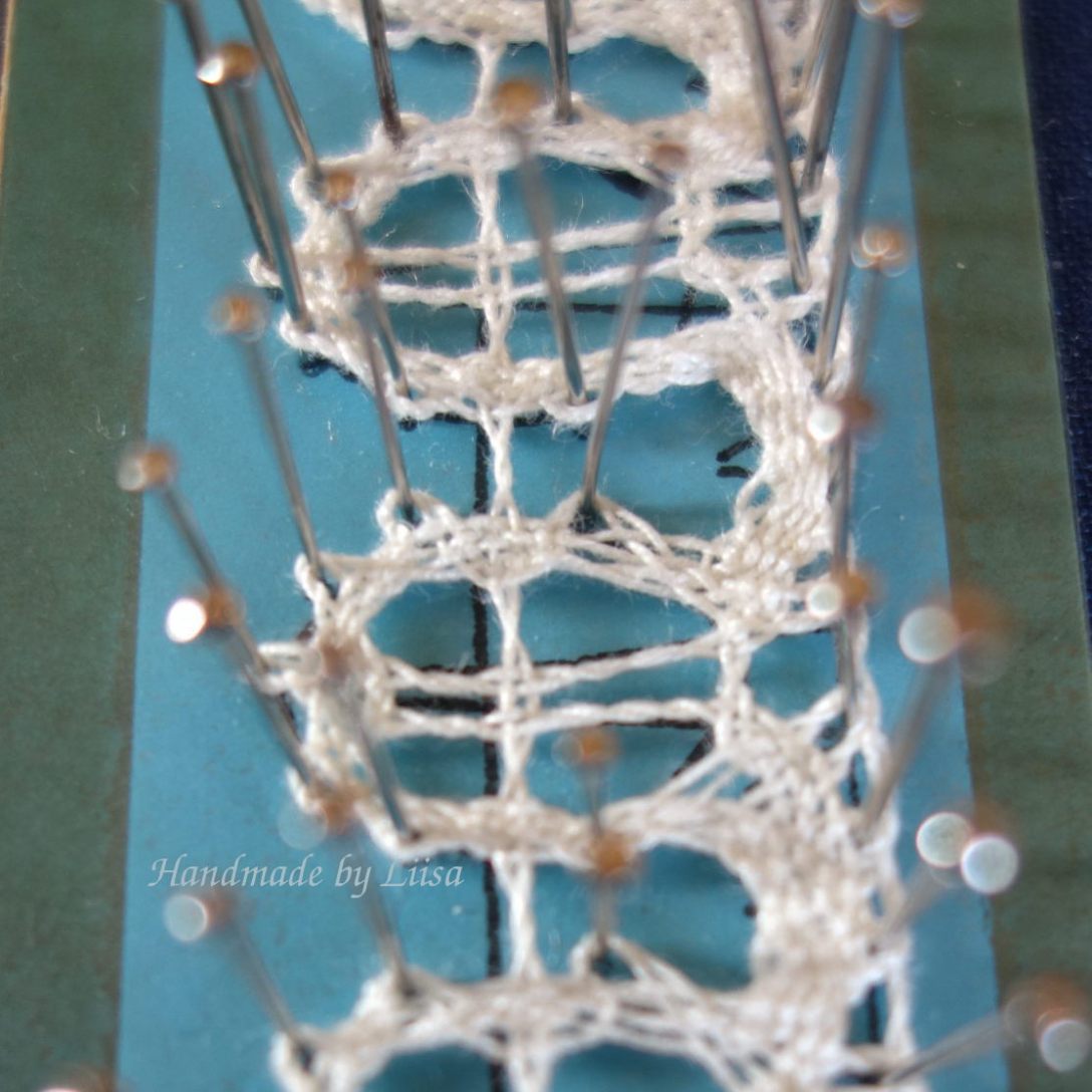 Lace for pin cushions, pitsiä neulatyynyn reunaan