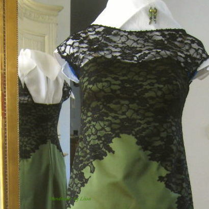 The colour scheme of the previous post continues with this forest green satin that we found for a young lady's evening dress. The black lace is sewn onto the bodice slightly asymmetrically and continues to cover the décolletée. * Nuoren neidin iltapukuun löytyi Eurokankaasta paksua ja kauniin metsänvihreää puuvilla-viskoosisatiinia. Miehustaan ommeltiin kiinni mustaa pitsiä joka… Continue reading Satin evening dress, satiini-iltapuku