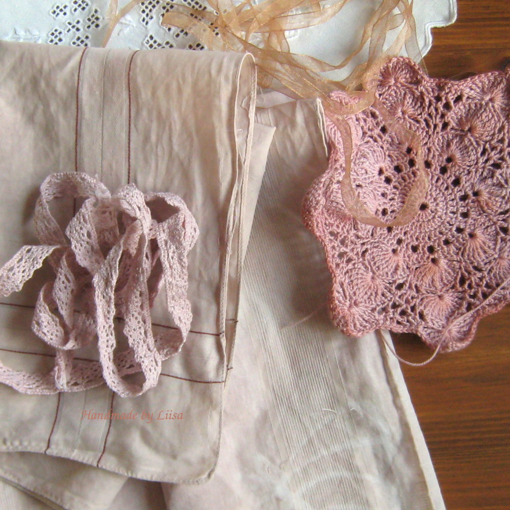 One of my biggest treasures is a lace petticoat of my grandmother's. It has sumptuous Chantilly lace inserts, an embroidered monogram with her initials and is absolutely beautifully hand sewn. I renewed my old silk nightgown (which somehow had shrunk in the cupboard) by adding a tatted lace edging to the neckline and copying the… Continue reading Silk beauties, silkki-ihanuuksia