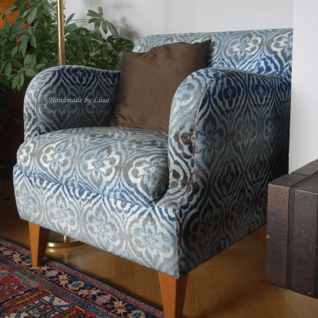 This was easier than I had expected! Our old armchairs had served well but were looking a bit dreary. I found this velvet upholstery fabric that suited our colours and decided to give it a go. * Vanhojen kauhtuneiden nojatuolien verhoileminen onnistui mainiosti ja oli loppujen lopuksi helpompaa kuin kuvittelin. Väreihimme sopivan kankaan löysin Eurokankaan… Continue reading An upholstery job, nojatuolin verhoilua